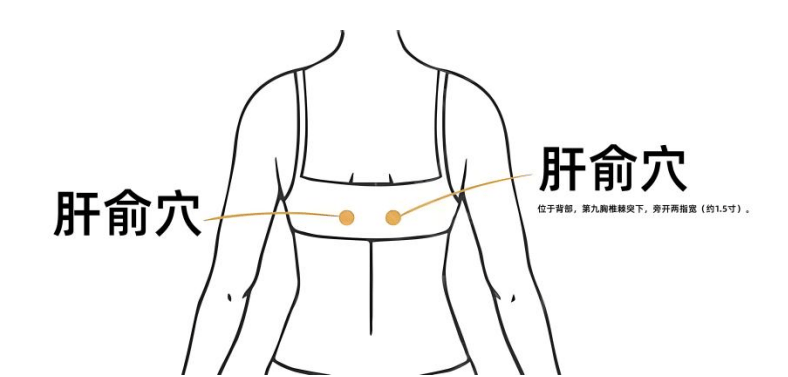 3.肝俞穴:位于背部,第九胸椎棘突下,旁开两指宽(约1.5寸)。高阶玩家可以试试艾灸这里,每周艾灸2—3次,能温养肝血,给肝脏做个“深度SPA”。