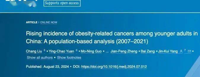 ⑤Chang Liu, Ying-Chao Yuan, Mo-Ning Guo, et al. Rising incidence of obesity-related cancers among younger adults in China: A population-based analysis (2007-2021). Med, 2024.
