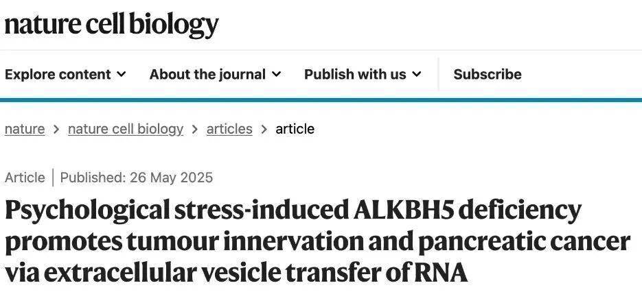 ⑥Chen, Z., Zhou, Y., Xue, C. et al. Psychological stress-induced ALKBH5 deficiency promotes tumour innervation and pancreatic cancer via extracellular vesicle transfer of RNA. Nat Cell Biol (2025).