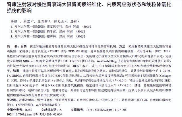 李鹏.肾康注射液对慢性肾衰竭大鼠肾间质纤维化、内质网应激状态和线粒体氧化损伤的影响,现代药物与临床,2024-05-28