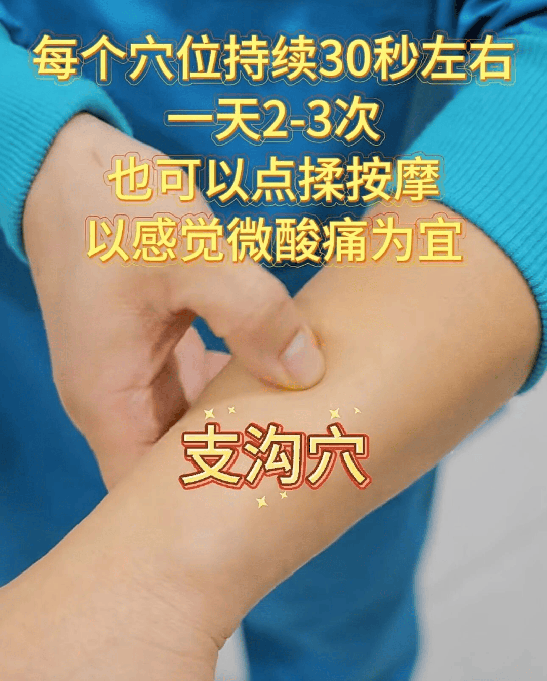 在手腕背横纹上3寸,适合肠道不好、便秘、腹痛的人群。