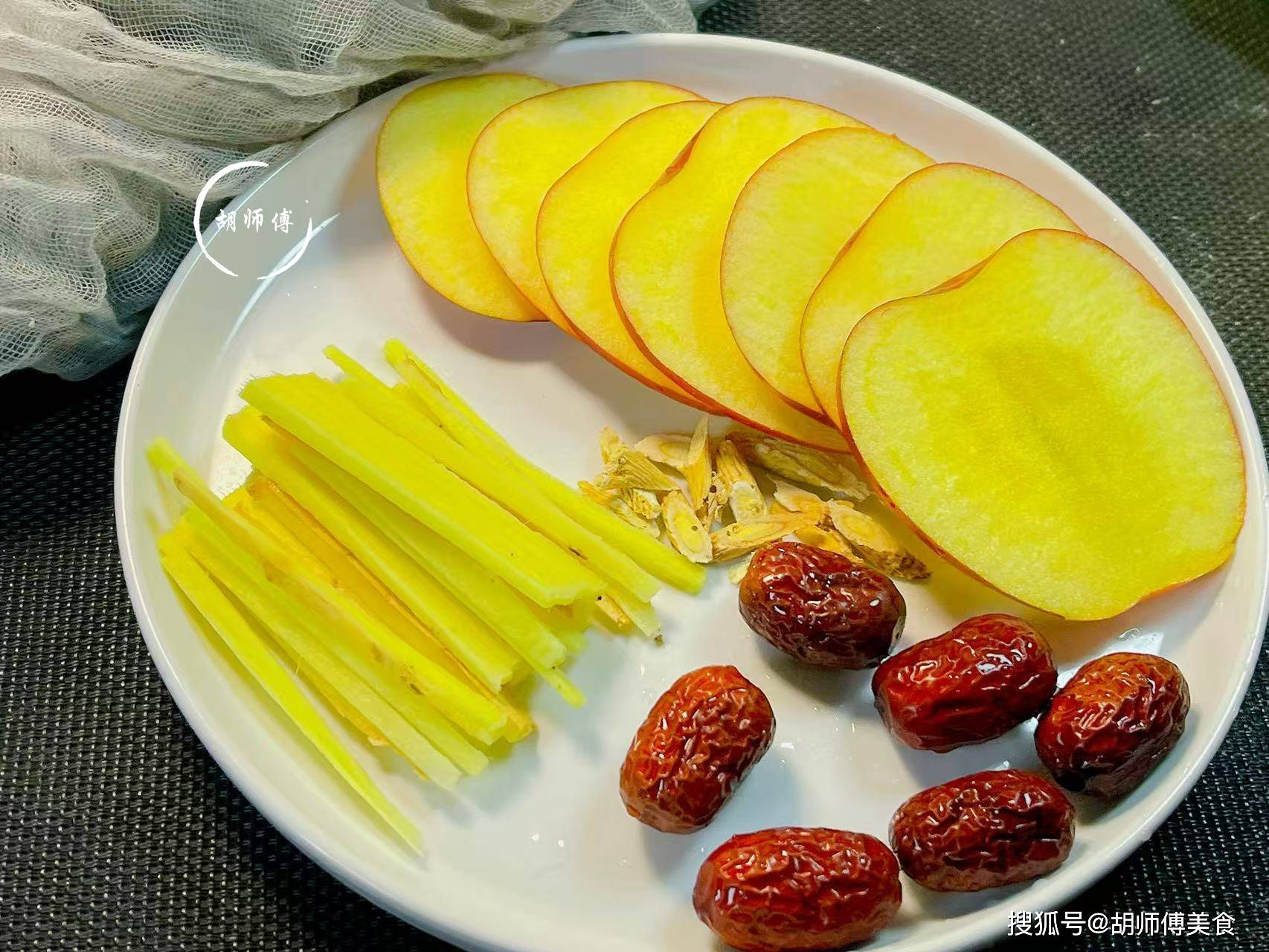 【食材准备】:苹果1个、生姜10克、红枣10克、黄芪2克。