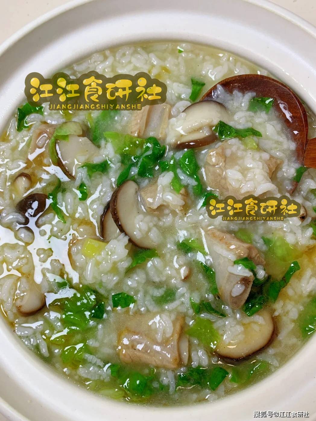 粥体绵密,米粒开花,完全吸收了排骨和香菇的精华。