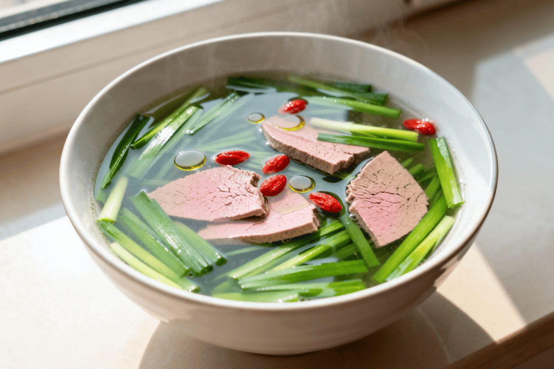 春季是韭菜一年中味道最鲜美的时候。韭菜可以养肝、补肝气,猪肝可以养肝明目、健脾益气。二者搭配煲汤,有助于养肝补阳,是非常好的应季菜。