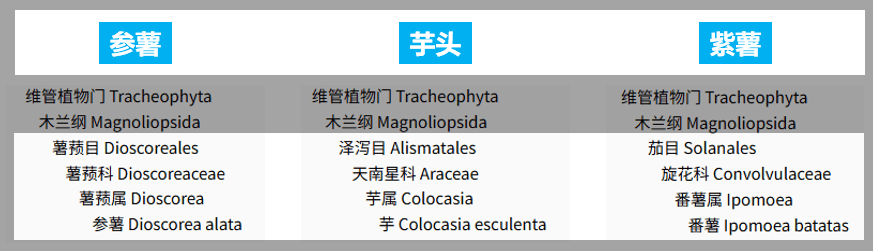 至于大家常用来混淆的紫薯,它的学名是甘薯(Ipomoea batatas),属于旋花科番薯属[3]。所以,这三者其实是完全不同的植物: