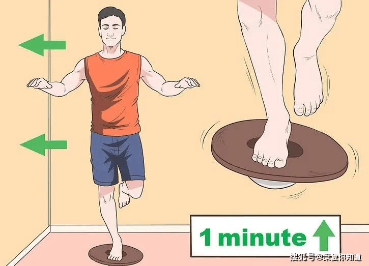 要确保身边有固定的、可以抓扶的东西或是有人看护,尝试在这些平面上保持1分钟左右的平衡。熟悉后可适当增加时间。