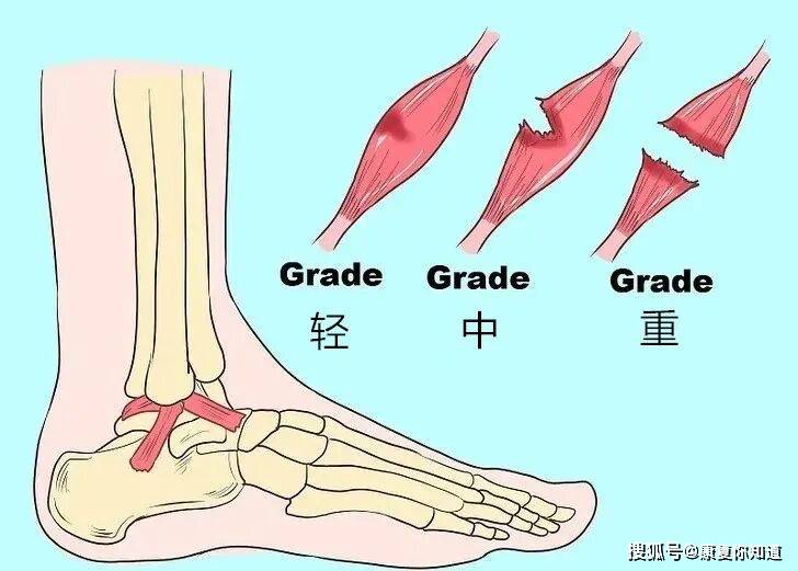 踝关节扭伤是所有运动损伤中发生率最高的,占40%以上。一般来说,踝关节扭伤可分为: