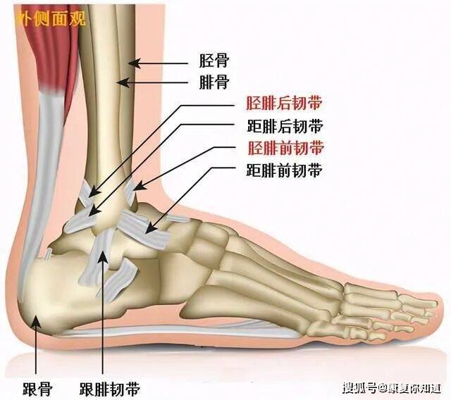- 外侧的外侧副韧带,包括距腓前韧带、跟腓韧带、距腓后韧带。