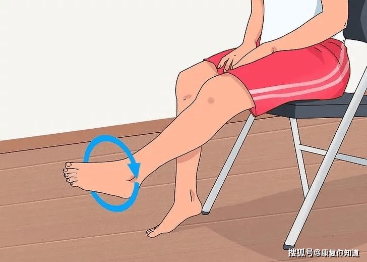 ①将腿伸直,轻轻顺时针转动脚踝画圈,然后再做一组逆时针方向动作。