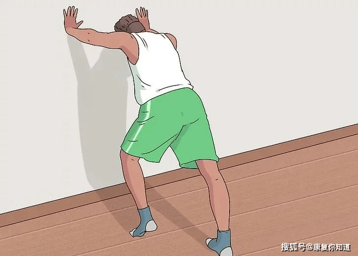 受伤的脚慢慢向后滑动,直到感觉到滑动的小腿有轻微拉伸感。