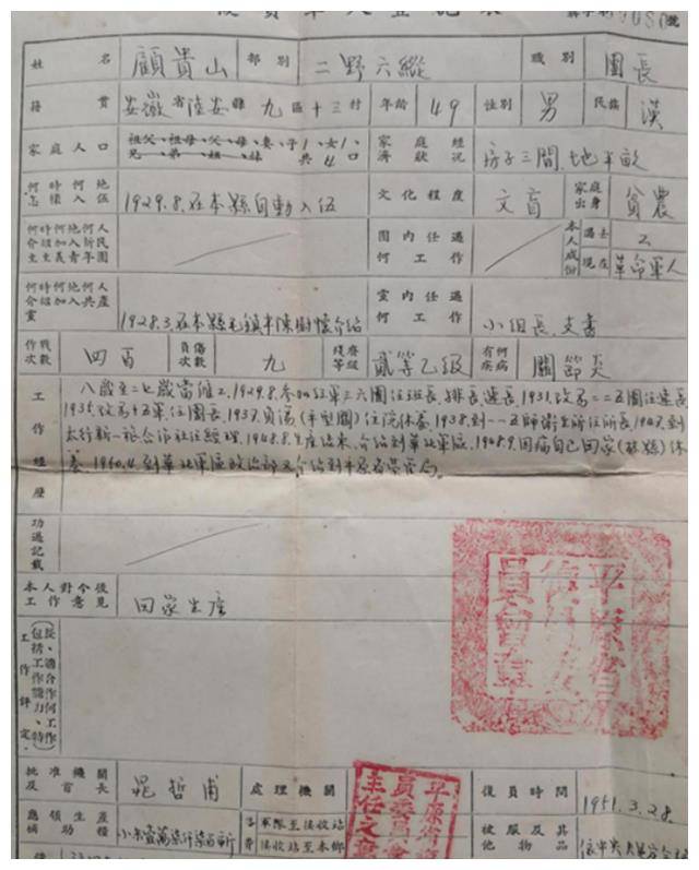 工作人员心中一惊,按理说,红军时期担任团长的英勇将领,应该在开国将军的名单里才对,但翻遍军委部队的记录,顾贵山的名字却并没有出现。难道,这位英勇的老战士已经失踪了吗? 参军受伤,归隐乡村 顾贵山,1910年出生于安徽六安县一个贫困的山村,家境十分艰苦。他的父母是普通农民,生活困苦中,他们拼尽全力将顾贵山送到私塾读书,希望他能通过知识改变命运。顾贵山的青年时代正值革命风云激荡,红军战士常常路过他们的村庄,帮忙播种粮食,打水浇地。那些穿着军装、满脸风霜的战士们成了顾贵山心中永不熄灭的火种,也深深地激发了他投身革命的决心。
