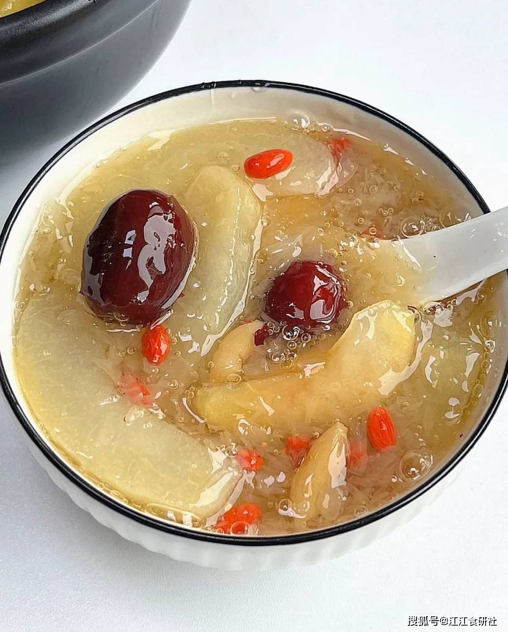 银耳,是“平民燕窝”,富含胶质。它能帮你把水分牢牢锁在身体里,润肺又润肤。但很多人煮银耳,不出胶,清汤寡水的。