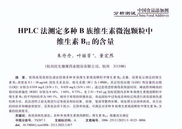 HPLC法测定多种B族维生素微泡颗粒中维生素B12的含量 朱丹丹;叶丽芳;董宏然 中国食品添加剂 2025-05-01