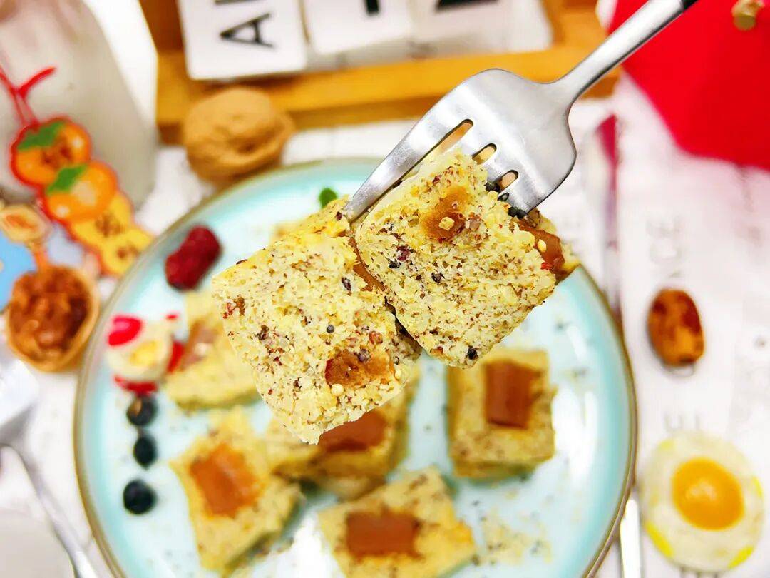 蒸好的糕点带着红枣的自然甜香,入口绵柔中还藏着藜麦咯吱咯吱的惊喜口感,山楂小方碎的点缀更添一丝酸甜解腻,全家都很适合吃!