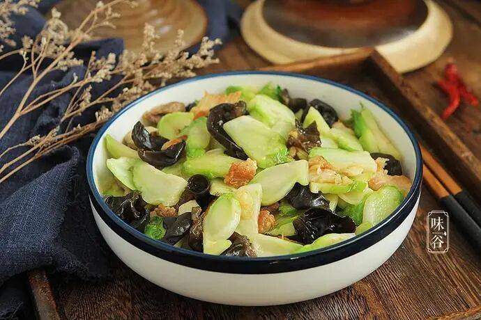【材料】:儿菜 适量、木耳 适量、五花肉适量、蚝油 2大勺、盐 1小勺、姜蒜 适量、