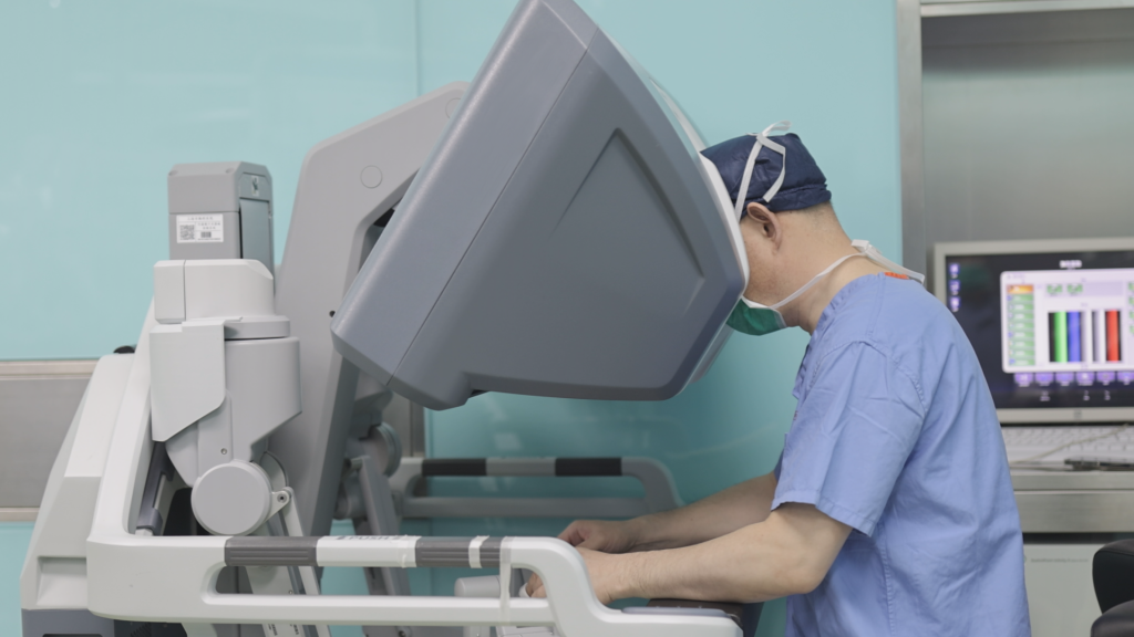 李志刚医生正在进行食管癌机器人手术。本文图均为 上海市胸科医院 供图