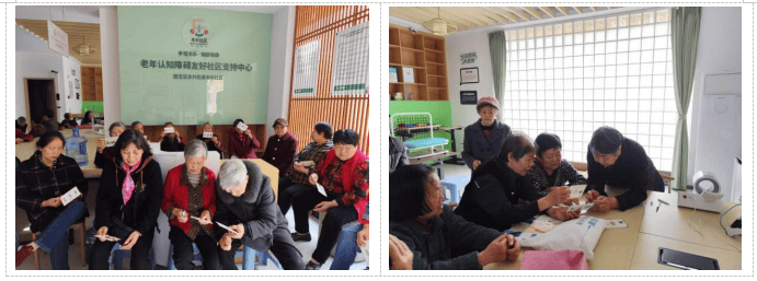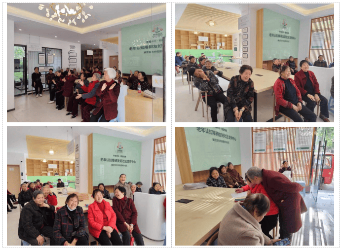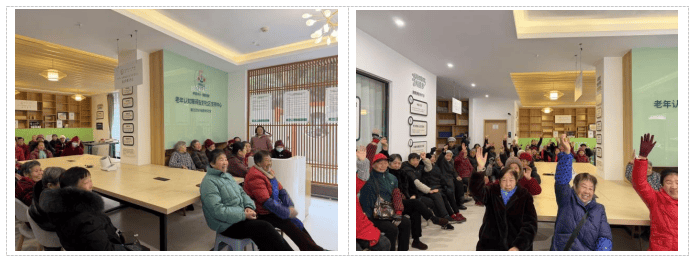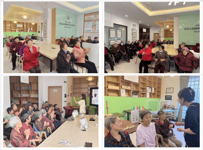 项目前期对辖区内2000余名65岁及以上老年人开展了认知功能筛查,实现“愿筛尽筛、应筛尽筛”,从中筛选出120余名风险人群纳入全程干预。在此基础上,丰乐社区围绕记忆唤醒、思维训练、身体锻炼、反应力训练、社交互动、定向力训练等模块,持续开展了系统化课程:通过老照片分享与卡片配对游戏激活长期与短期记忆;借助拼图挑战与数字排序锻炼逻辑思维与空间能力;组织健身操、手指操及户外散步促进体脑协调;开展“找不同”“听指令做动作”等反应力游戏提升思维敏捷度。与此同时,项目培育了一支老年认知友好志愿者队伍,倡导低龄老人照护高龄老人的互助模式,并建成了涵盖科普宣传、自主筛查、脑放松、脑训练、运动康复、多功能学习、数据呈现七大功能区的认知障碍支持中心,为长者提供常态化、专业化的认知健康服务。