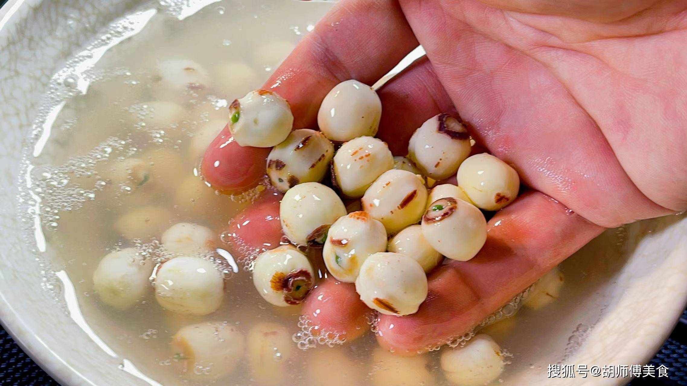 第三步:买莲子,一定要买带芯的莲子,这种莲子营养价值更高,因为莲子很硬,所以买回家的莲子,需要用水浸泡10小时才能备用。