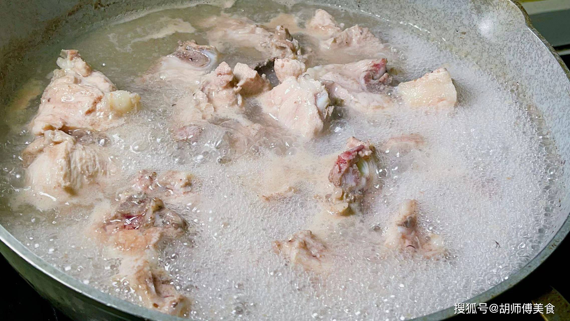 第二步:煮鲜汤时,建议大家用猪尾脊骨,因为这个部位油脂多肉少,用来煮汤会更鲜,将买回家的猪尾脊骨冲洗干净后放入锅中,同时加入适量冷水,将猪尾脊骨煮10分钟后捞出,接着再用流水,将猪尾脊骨表面的浮沫都冲走即可备用。
