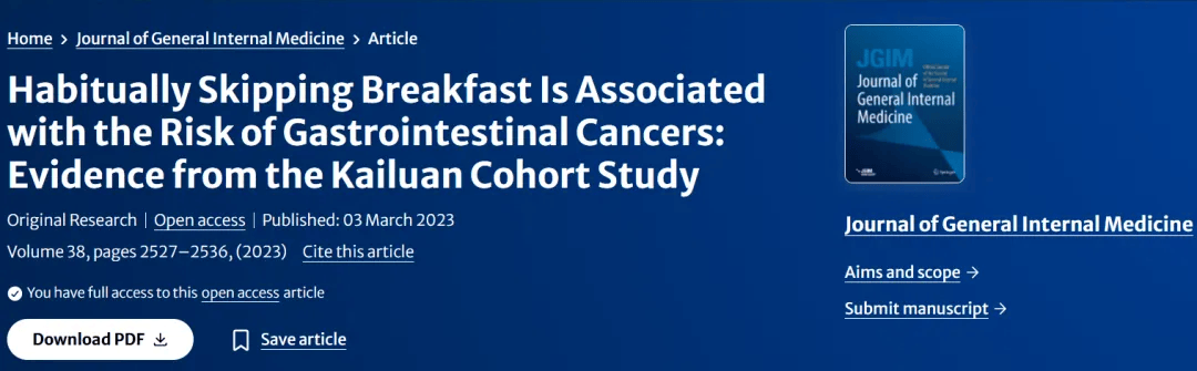 2023年,国际期刊《普通内科杂志》上刊发了一项针对6万多参与者的研究,结论直白又扎心: 几乎不吃早餐的人,多个部位的消化道肿瘤(如食管、胃、结直肠、肝胆系统等)发生率,显著高于规律吃早餐的人。 ①