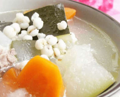 制法:排骨焯水后与薏苡仁、姜片同入锅,加水煲1小时,加入冬瓜(连皮)再煲30分钟,加盐调味即可。