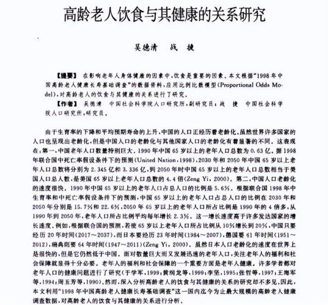 [1] 吴德清.高龄老人饮食与其健康的关系研究 , 中国人口科学, 2001-12-30