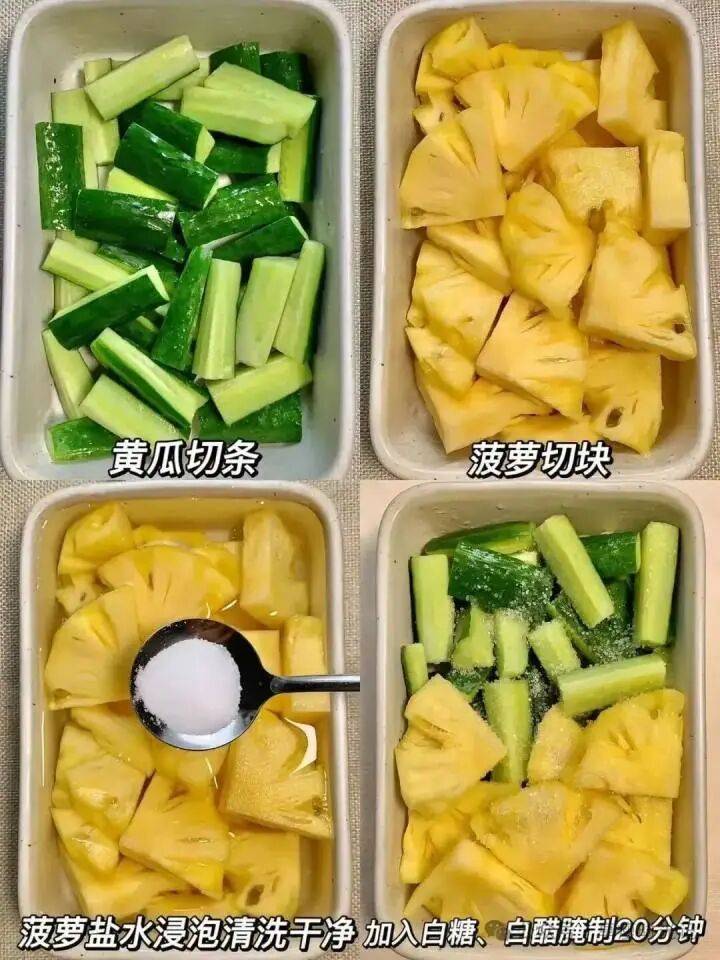 最近,一道听起来有些新奇的凉菜——菠萝拌黄瓜,在社交媒体上迅速走红。不少博主称其为“低卡清爽减肥晚餐天花板”,并纷纷晒出自己的制作视频:黄瓜切块,菠萝切块用盐水浸泡,加一点糖和白醋拌匀即可食用。