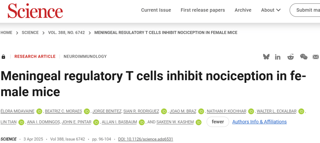 这项研究从根本上改变了我们对免疫系统与神经系统在疼痛中交互作用的认知。它首次确立了脑膜Treg细胞作为疼痛稳态的直接调控者,揭示了一条由性激素驱动、内啡肽介导、靶向特定感觉神经元的独立镇痛通路。这不仅为理解疼痛的性别差异提供了关键机制,也为开发更精准、副作用更小的性别特异性镇痛药物开辟了全新的道路。未来,针对这一通路的干预,或将为数百万受慢性疼痛困扰的患者带来新希望。
